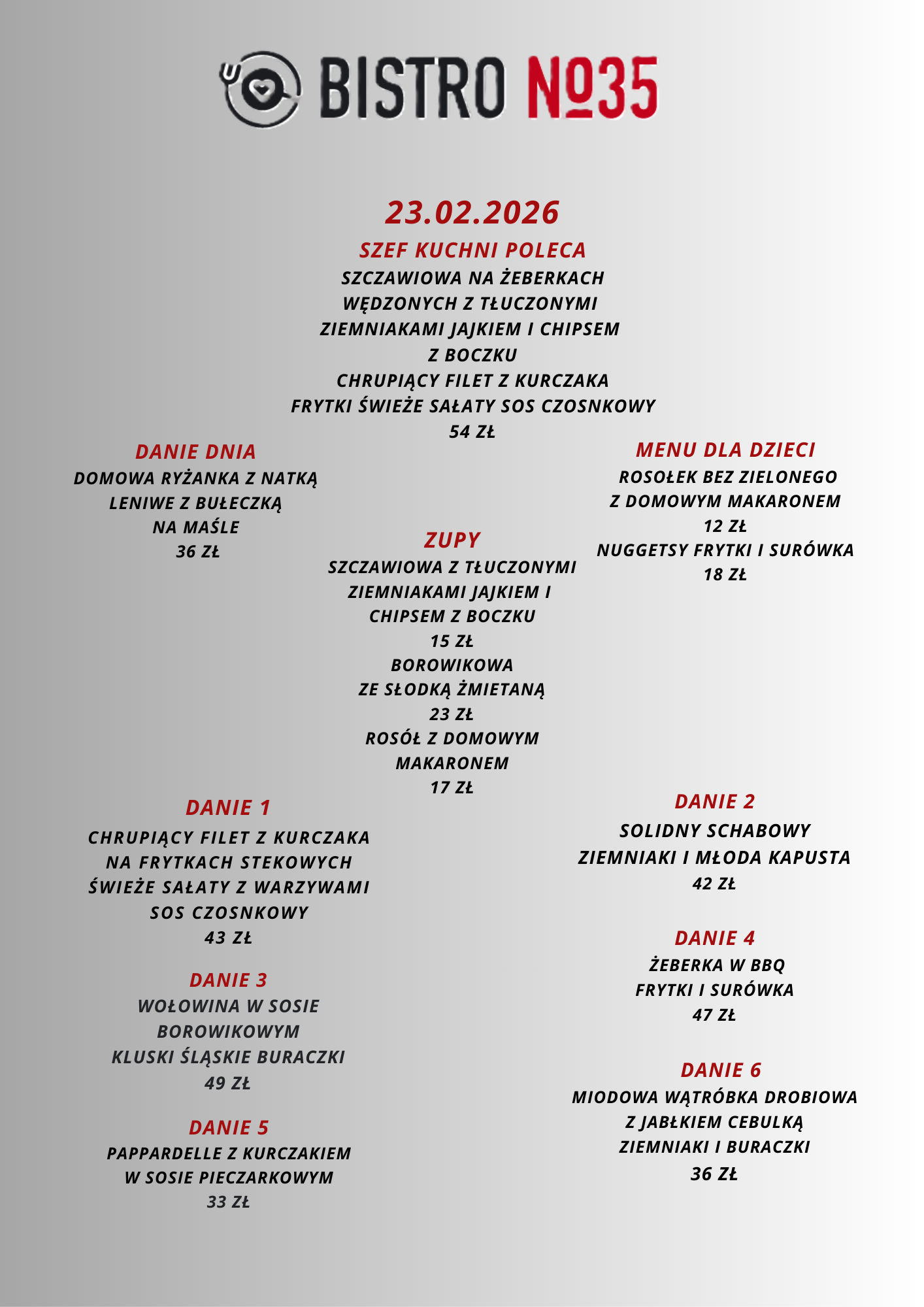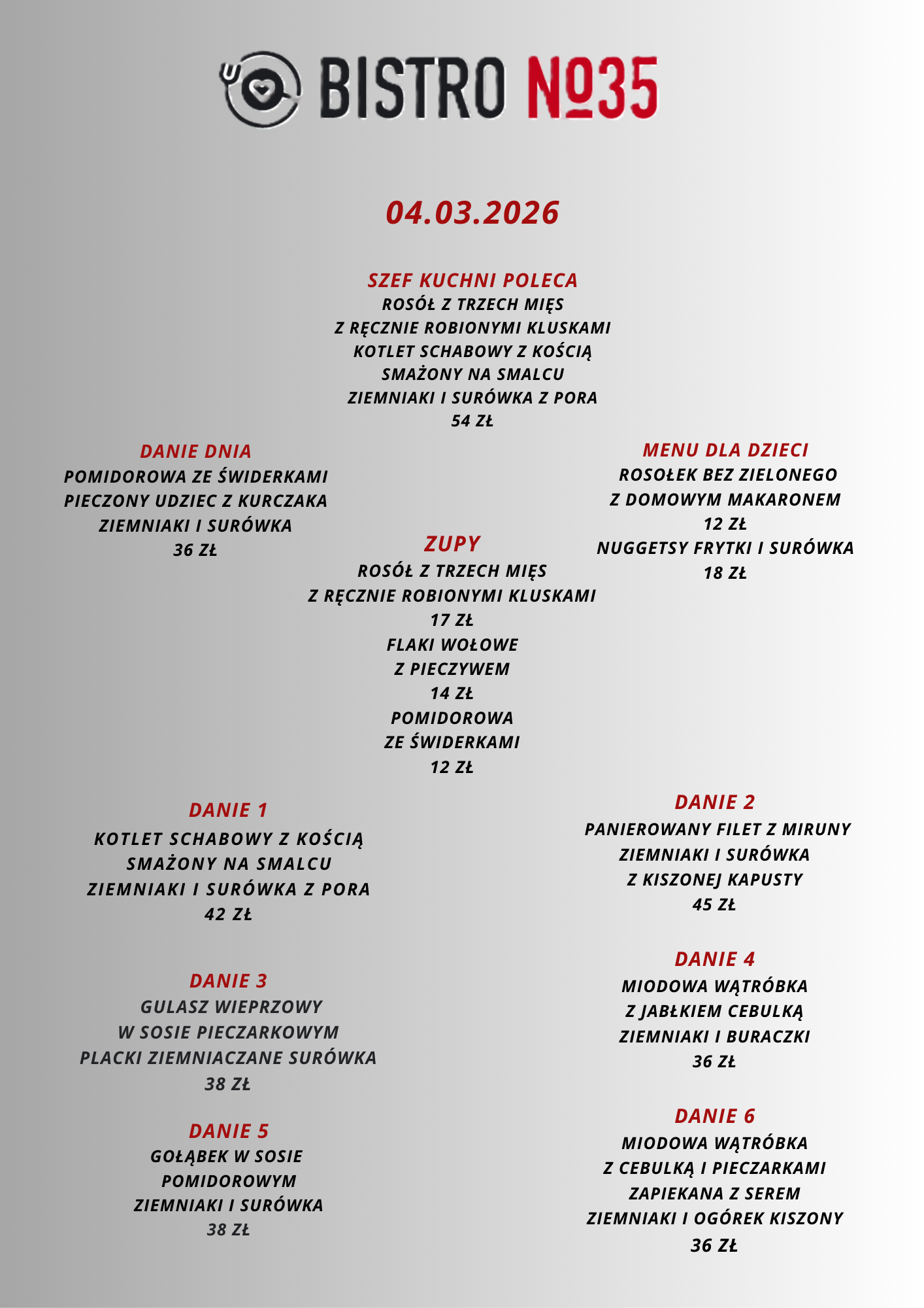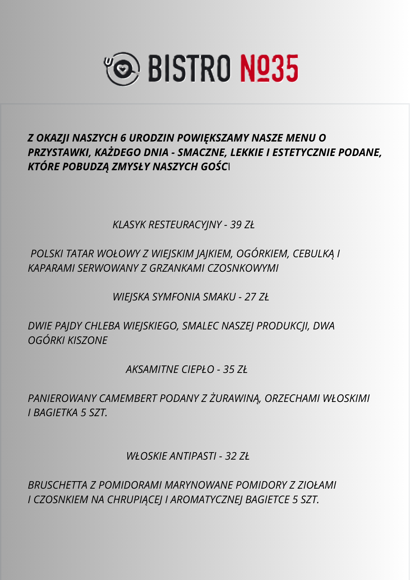 Opublikowano na Robert BTrustindex sprawdza, czy pierwotnym źródłem recenzji jest Google. Przepyszne jedzenie, sycące porcję, fantastyczna komunikacja z właścicielem. Miejsce godne polecenia, bo czuć, że jest to kuchnia robiona prosto od serca. Cała druzyna z Troszyna dziękuję i pozdrawia.Opublikowano na Kamila ATrustindex sprawdza, czy pierwotnym źródłem recenzji jest Google. W sobotę 18.10.2025 odbyła się impreza urodzinowa 60-tka taty :) Tata i goście byli zachwyceni 🤩 Jeszcze raz bardzo dziękujemy 😘 Dziękujemy za udostępnienie sali u Państwa w restauracji. Bez Państwa udziału by się to wszystko nie udało... Jedzenie było przepyszne, świeżutkie i do tego ogromne porcje 😁 bardzo polecamy ! Obsługa przesympatyczna Właściciel bardzo miły i konkretny Miejsce samo w sobie bardzo przytulne i klimatyczne Z pewnością tu wrócimy !Opublikowano na Iwona GTrustindex sprawdza, czy pierwotnym źródłem recenzji jest Google. Bardzo smaczne jedzenie, korzystaliśmy że śniadań, porcje spore i miła obsługa. PolecamyOpublikowano na Patrycja PawlakTrustindex sprawdza, czy pierwotnym źródłem recenzji jest Google. Przyjemne miejsce, dobry rosołek. Właściciel podpytuje czy wszystko w porządku, to miłe.Opublikowano na OrgahairTrustindex sprawdza, czy pierwotnym źródłem recenzji jest Google. I cannot believe how amazing the food is. The taste, the presentation of each dish was like a top restaurant 😋Opublikowano na Paulina WalczakTrustindex sprawdza, czy pierwotnym źródłem recenzji jest Google. Miałam przyjemność być gościem na przyjęciu urodzinowym połączonym z chrzcinami, które odbywało się w tej restauracji – i muszę przyznać, że był to absolutnie wyjątkowy dzień, w dużej mierze dzięki miejscu, które zostało wybrane. Jedzenie było fenomenalne – każde danie przygotowane z najwyższą starannością, pełne smaku i elegancji. Widać, że kuchnia prowadzona jest z pasją i dbałością o jakość. Jednak to, co najbardziej zasługuje na wyróżnienie, to zaangażowanie właściciela. To człowiek z ogromnym sercem i pasją do tego, co robi. Dbał o każdy, nawet najdrobniejszy szczegół. Sam osobiście doglądał przygotowań, obsługiwał nas z życzliwością i uśmiechem, a przede wszystkim – zrobił wszystko, aby ten dzień był dla nas naprawdę wyjątkowy. Czuć było autentyczną troskę i zaangażowanie, co dziś rzadko się zdarza. Z całego serca polecam to miejsce – nie tylko ze względu na wyśmienitą kuchnię, ale przede wszystkim dzięki atmosferze, jaką potrafi stworzyć tak wyjątkowy gospodarz.