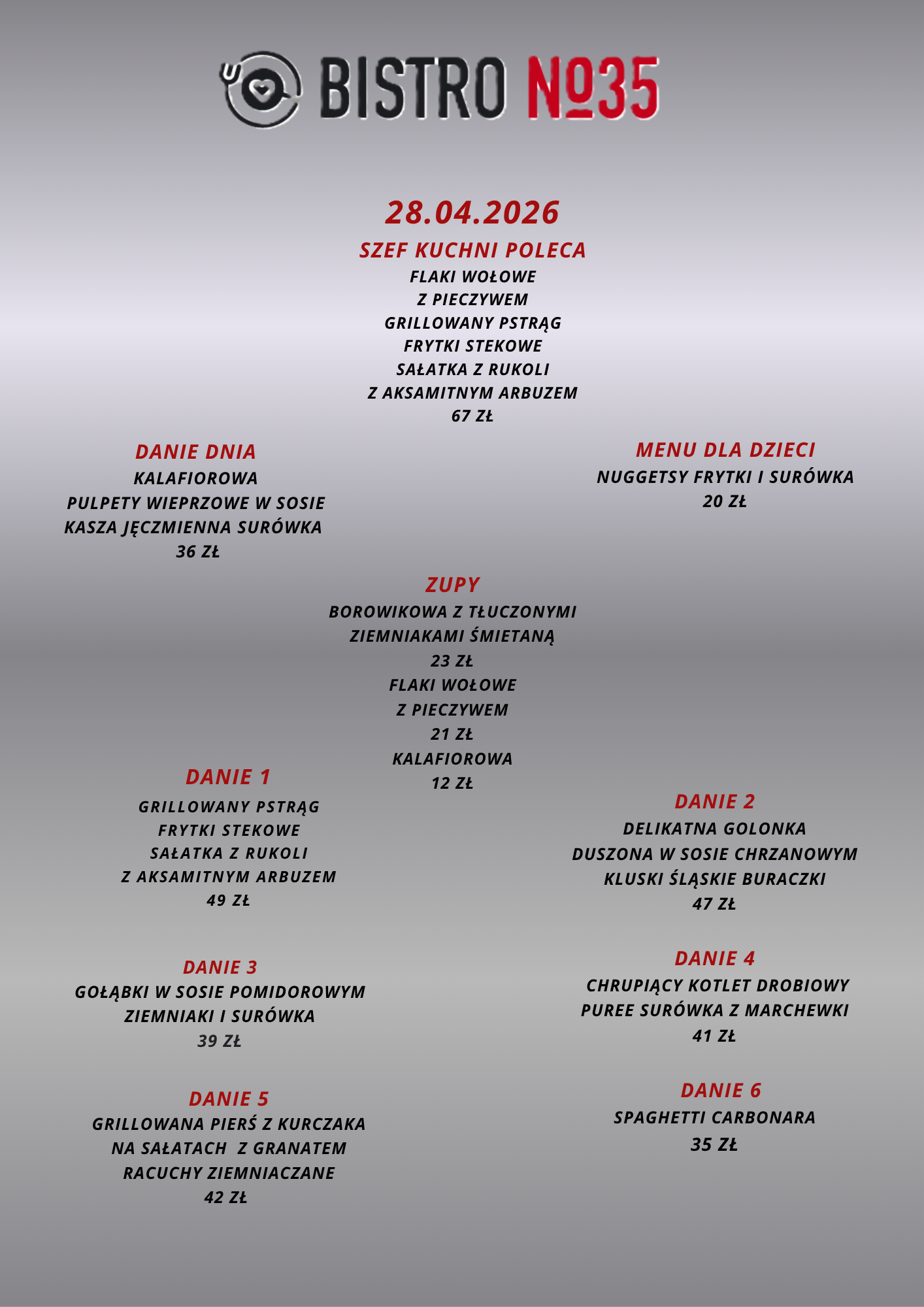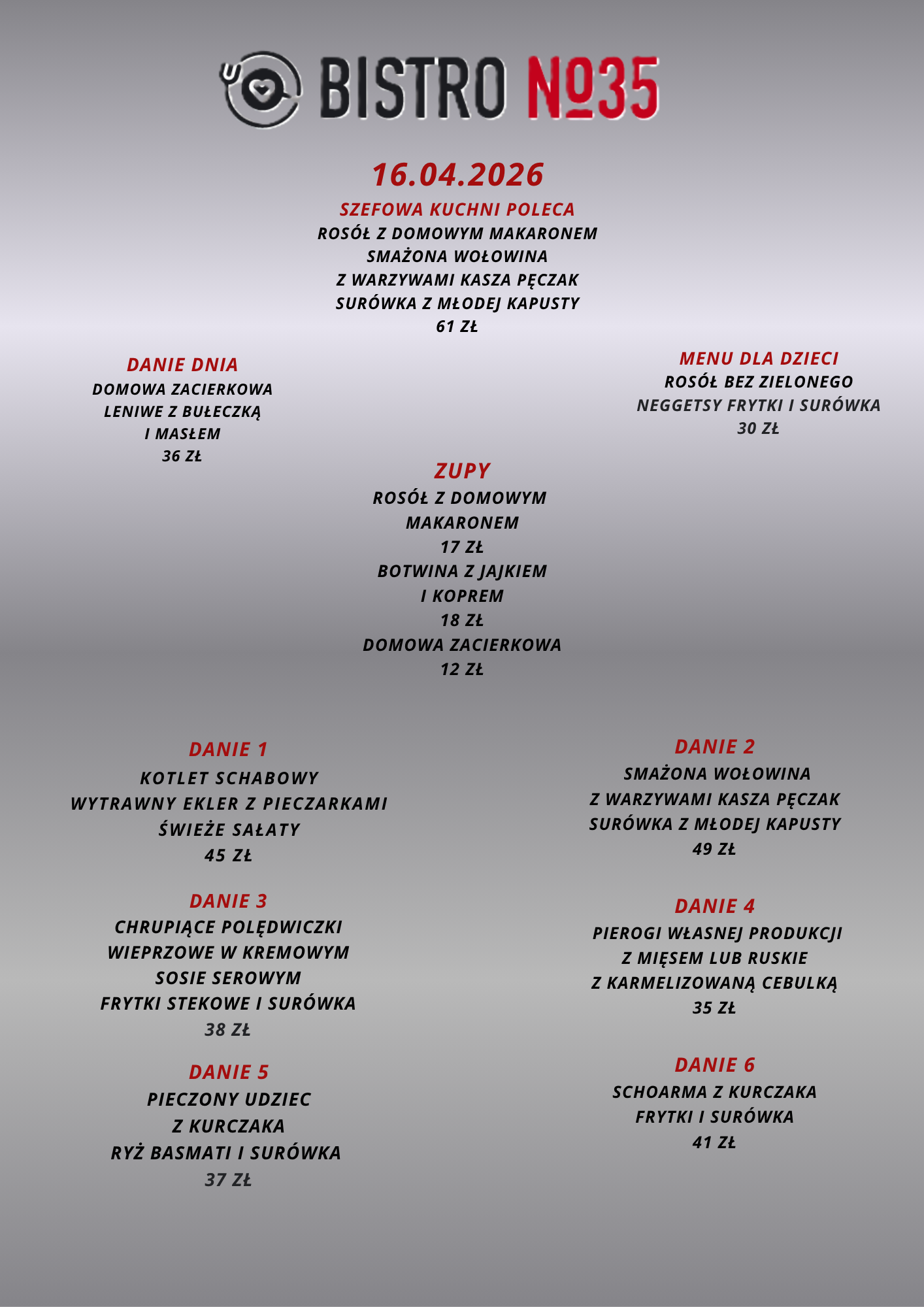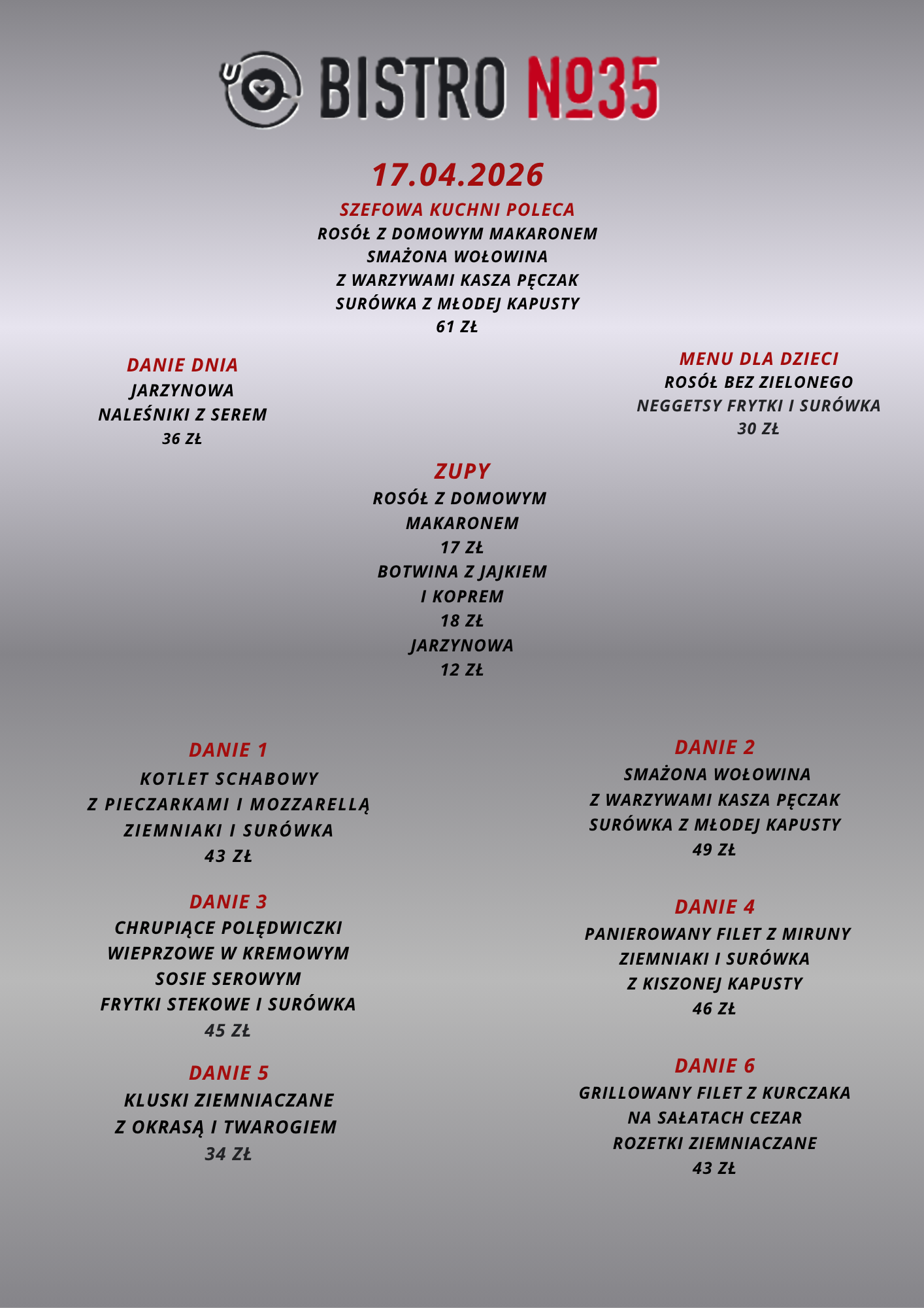 Opublikowano na Robert BTrustindex sprawdza, czy pierwotnym źródłem recenzji jest Google. Przepyszne jedzenie, sycące porcję, fantastyczna komunikacja z właścicielem. Miejsce godne polecenia, bo czuć, że jest to kuchnia robiona prosto od serca. Cała druzyna z Troszyna dziękuję i pozdrawia.Opublikowano na Kamila ATrustindex sprawdza, czy pierwotnym źródłem recenzji jest Google. W sobotę 18.10.2025 odbyła się impreza urodzinowa 60-tka taty :) Tata i goście byli zachwyceni 🤩 Jeszcze raz bardzo dziękujemy 😘 Dziękujemy za udostępnienie sali u Państwa w restauracji. Bez Państwa udziału by się to wszystko nie udało... Jedzenie było przepyszne, świeżutkie i do tego ogromne porcje 😁 bardzo polecamy ! Obsługa przesympatyczna Właściciel bardzo miły i konkretny Miejsce samo w sobie bardzo przytulne i klimatyczne Z pewnością tu wrócimy !Opublikowano na Iwona GTrustindex sprawdza, czy pierwotnym źródłem recenzji jest Google. Bardzo smaczne jedzenie, korzystaliśmy że śniadań, porcje spore i miła obsługa. PolecamyOpublikowano na Patrycja PawlakTrustindex sprawdza, czy pierwotnym źródłem recenzji jest Google. Przyjemne miejsce, dobry rosołek. Właściciel podpytuje czy wszystko w porządku, to miłe.Opublikowano na OrgahairTrustindex sprawdza, czy pierwotnym źródłem recenzji jest Google. I cannot believe how amazing the food is. The taste, the presentation of each dish was like a top restaurant 😋Opublikowano na Paulina WalczakTrustindex sprawdza, czy pierwotnym źródłem recenzji jest Google. Miałam przyjemność być gościem na przyjęciu urodzinowym połączonym z chrzcinami, które odbywało się w tej restauracji – i muszę przyznać, że był to absolutnie wyjątkowy dzień, w dużej mierze dzięki miejscu, które zostało wybrane. Jedzenie było fenomenalne – każde danie przygotowane z najwyższą starannością, pełne smaku i elegancji. Widać, że kuchnia prowadzona jest z pasją i dbałością o jakość. Jednak to, co najbardziej zasługuje na wyróżnienie, to zaangażowanie właściciela. To człowiek z ogromnym sercem i pasją do tego, co robi. Dbał o każdy, nawet najdrobniejszy szczegół. Sam osobiście doglądał przygotowań, obsługiwał nas z życzliwością i uśmiechem, a przede wszystkim – zrobił wszystko, aby ten dzień był dla nas naprawdę wyjątkowy. Czuć było autentyczną troskę i zaangażowanie, co dziś rzadko się zdarza. Z całego serca polecam to miejsce – nie tylko ze względu na wyśmienitą kuchnię, ale przede wszystkim dzięki atmosferze, jaką potrafi stworzyć tak wyjątkowy gospodarz.